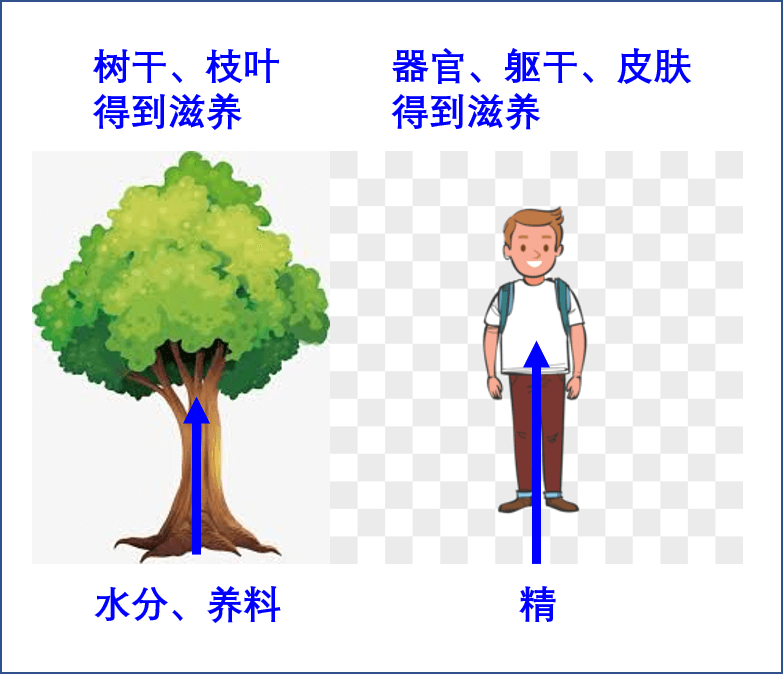 中医认为,先天之阳生精,精生气,气生神(如下图所示)。气和神都依赖于精的充足,而精是从出生开始就由先天之阳进行源源不断地补充。我们用植物来打个比方,人需要精,就像是植物需要水分和土壤中的营养物质。如果植物没有了水分和土壤,叶子就会枯黄、掉落,枝干就会枯死,对应在人身上,枝干就像是人的五脏六腑、四肢百骸,而叶子就像是人的毛发、皮肤。人身体的一切组织、器官,每时每刻都需要精的滋养,没有了精,人的器官就得不到应有的养分,就会进入一种“枯萎”的状态。健康的植物生了虫子,我们可以喷药、杀虫,放啄木鸟,但是一旦植物生虫是因为失去了养料的滋润而枯萎、腐烂导致的,那无论我们如何喷药、杀虫,也挽救不了植物的生命。